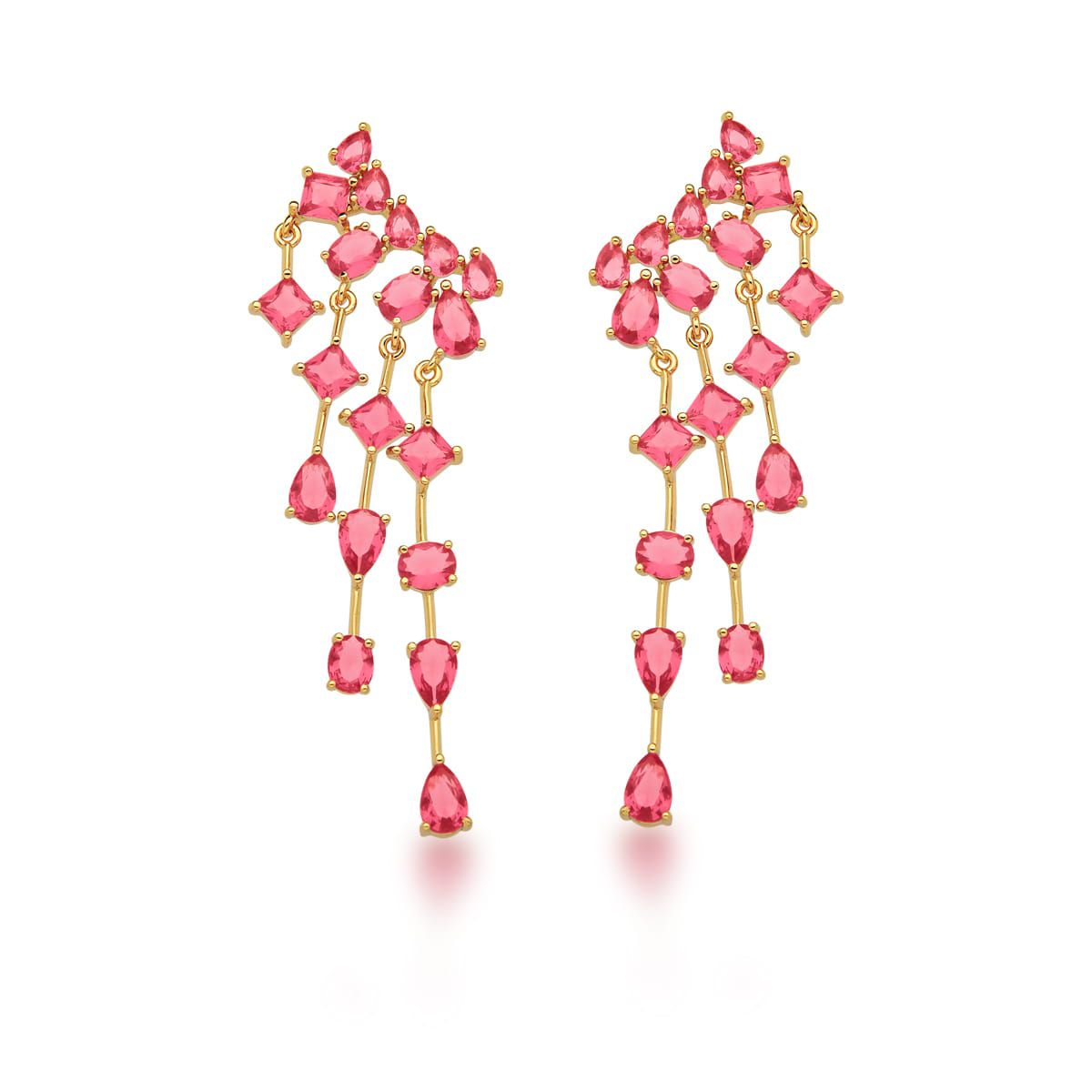 Brinco ear cuff pêndulo com cristais pink banhado a ouro 18K.